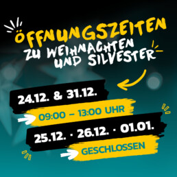 bitte beachtet unsere besonderen Öffnungszeiten über die Festtage: